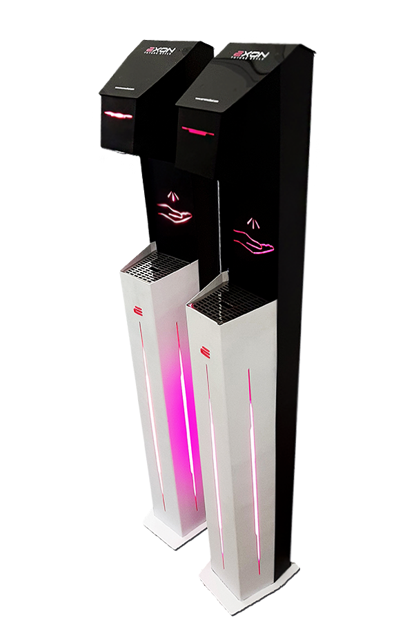 دستگاه اتوماتیک ضد عفونی کننده دست شرکت دانش بنیان اکسون محصولی بسیار کاربردی است که در جهت مبارزه با ویروس کرونا و افزایش سطح سلامت جامعه طراحی و ساخته شده است . این محصول بر مبنای رعایت پروتکل های بهداشتی و اصل فاصله گذاری اجتماعی طراحی شده که کاربر بدون نیاز به تماس فیزیکی با دستگاه میتواند جهت ضد عفونی کردن دستان خود از آن بهره مند شود . از این محصول میتوان در بیمارستان ها ، کلینیک های پزشکی ، فروشگاه ها ، سازمان ها و ادارات ،موسسات آموزشی ، هتل ها و رستوران ها ، بانک ها ، کارخانجات صنعتی ، مساجد و ... استفاده کرد .
